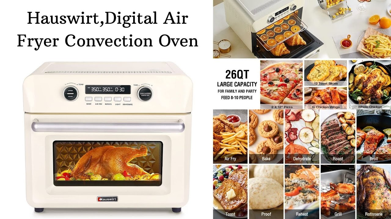 Hauswirt 26Qt Digital Air Fryer Convection Oven, Dehydrator Oilless Cooker With Separate Upper and Lower Heat Control For Air Fry, Bake, Dehydrate, Ferment, Roast, Rotisserie