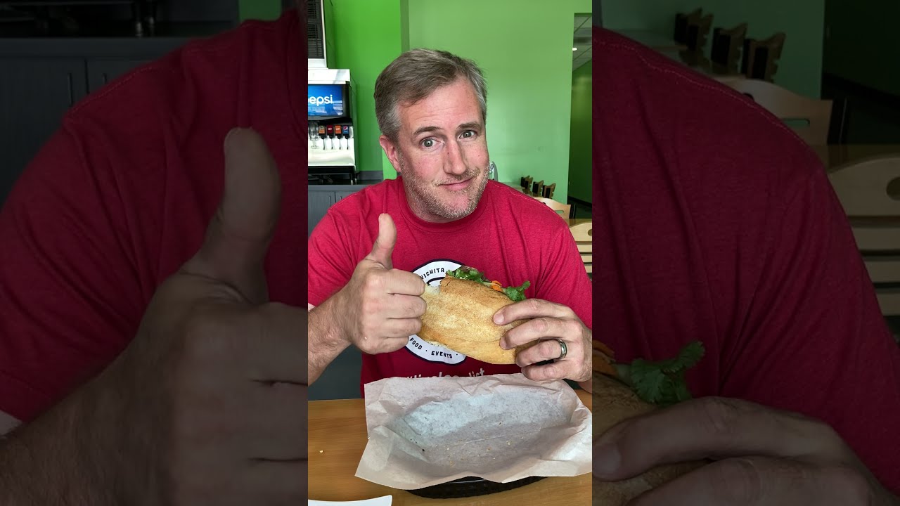 Troy gets the #8 Banh Mi sandwich at Vietnom Nom. It’s a locally sourced French baguette from Bagatelle, cucumber, cilantro, pickled carrots & daikon, jalapeños, house mayo. Served w/ marinated grilled pork.