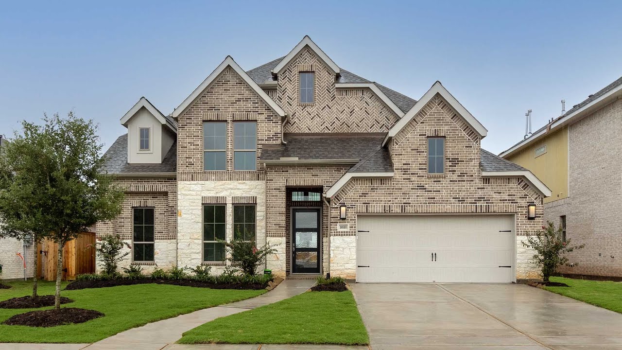 Candela is a brand new master-planned community of new homes for sale in Richmond, TX. This 3399 sq. ft. plan offers four bedrooms, three full bathrooms and one half bathroom. Home office with French doors set at two-story entry. Formal dining room opens to curved staircase. Kitchen and morning area open to two-story family room. Kitchen features generous island with built-in seating space. Family room features wall of windows. Primary bedroom features 12-foot ceiling. Primary bath includes dual vanity, garden tub, separate glass-enclosed shower and oversized walk-in closet with access to utility room. A second bedroom is downstairs. A game room, media room and two secondary bedrooms are upstairs. Extended covered backyard patio. Mud room off three-car garage. #perryhomes