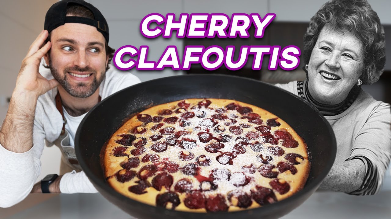 This Cherry Clafoutis recipe from Julia Child is magical. Not only is it incredibly easy to make, but it is TASTY! Find some in season cherries and have a blender on hand, that’s all you need to make this amazing dessert recipe from the French Chef. Find the recipe in Mastering the Art of French Cooking Volume 1. Follow along to “Jamie & Julia” as I make my way through Julia Child’s recipes … inspired from the movie “Julie & Julia”.