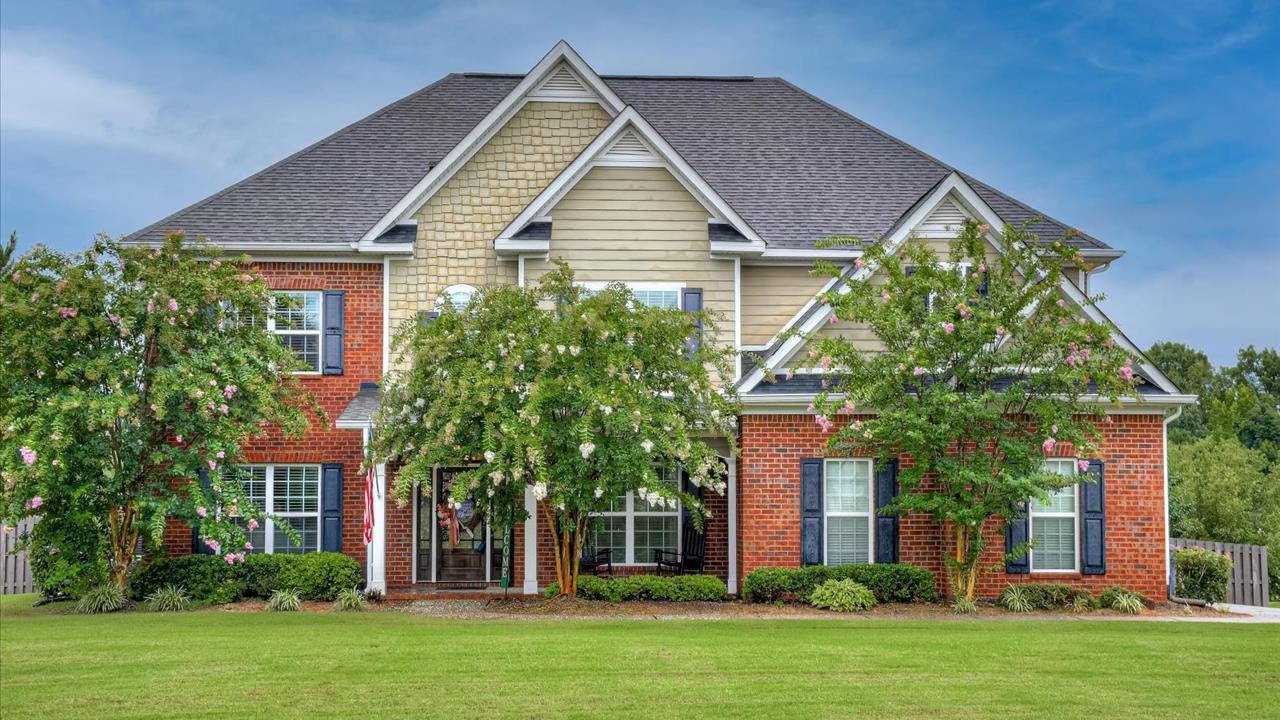 See the Property Website! :: Regina Wadsworth – Keller Williams Realty Augusta Partners – 706-414-1570 :: Welcome home to 5136 Windmill place located in Windmill Plantation. This stunning 2 story brick home w/ a side entry garage offers 5 bedrooms & 4 full bathrooms. The charming front porch awaits your guest. The foyer opens to the living room w/ french doors & dining room w/ trey ceiling, crown molding, and wainscotting. The great room offers a beautiful gas fireplace, built-ins & a double set of curved windows that allows natural light. The gourmet kitchen w/ granite, built-in microwave, kitchen island w/bar, side bar area, recessed lights, eat-in breakfast area, is perfect for entertaining. The bedroom on the main floor w/ a bathroom is perfect for guests. Hardwood floors throughout the downstairs. The large owner’s suite w/ trey ceiling, recessed lights offers a sitting area. The owner’s bathroom w/ granite countertops, separate tub & tiled shower w/ tile medalion flooring & walk-in closet. Nice corner lot with privacy fence, back deck, & fully landscaped yard. This home has it all.