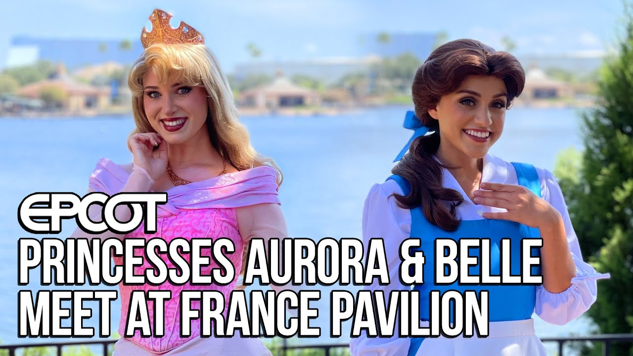 Princesses Aurora And Belle Distanced Meet At Epcot France Pavilion