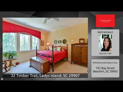 The Virtual Tour for the property at 32 Timber Trail, Ladys Island, SC 29907 listed for $998,000: Other homes for sale by Beth Bohmert of BHHS Bay Street Realty Group: Incredible, Cat Island custom home, located on its own point surrounded by tidal marsh protected by land conservancy on one side with no close neighboring homes. 4 BR, 4.5 BA. Open floor plan. Formal Dining room. Living Room has custom windows that soar allowing perfect views of outdoors. Gourmet kitchen: granite surfaces, custom cabinets, baking center, gas range & prep sink on island. Informal dining in kitchen. French …