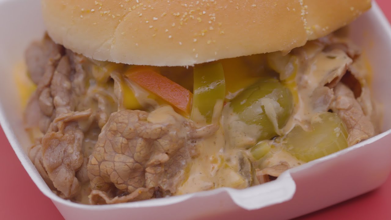 Marley’s diving into a dreamy cheesy beef sandwich.