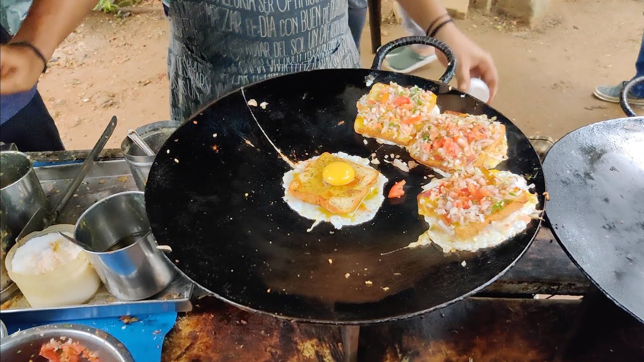 This tiny stall in Mysore serves delicious french toast with Indian twist. The way he prepares these egg sandwiches is very unique. First he breaks the eggs and cook only the egg whites on pan then he puts bread on the omelet. It is then topped with egg yolk, masalas and onion tomato mixture. The final dish is yummy and full of flavours.
