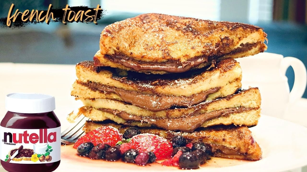 In a medium bowl combine eggs, sugar, cinnamon, vanilla and milk and mix together. Take 2 slices of brioche bread and spread nutella on one slice then put other slice on top. Dip bread in the egg mixture and coat on all sides. Heat a pan with non stick spray and melt unsalted butter. Add coated bread to pan and cook for 4-5 mins on both sides until golden brown. Serve warm and top with powdered sugar and syrup.