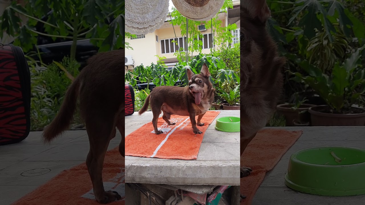 brutus eating outside house