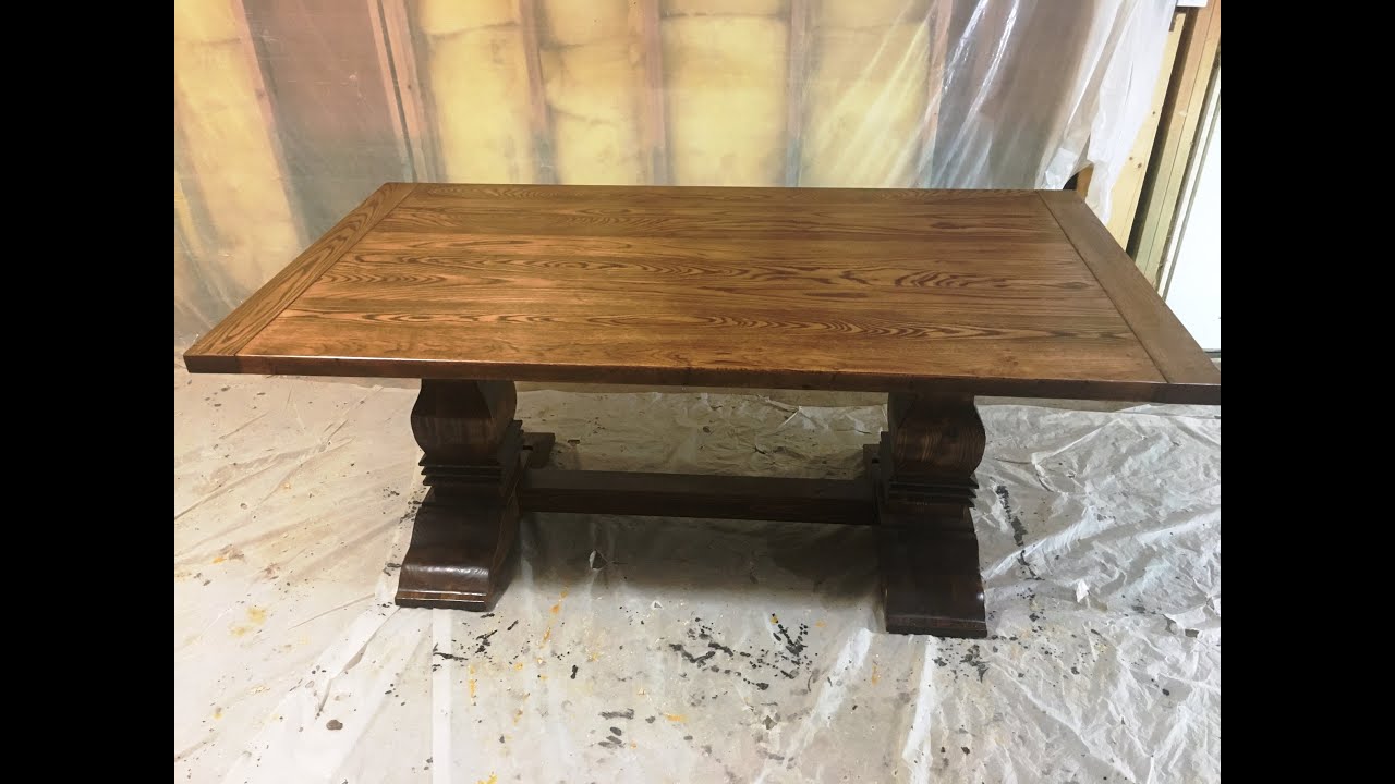“Savannah” French Pedestal Dining Table with an ash top and dark walnut stain. CuisineDiningdining roomdining tableFranceFrenchfrench cuisineFrench diningFurniturePedestalpedestal tablequotSavannahquottableVideoVlogYouTube