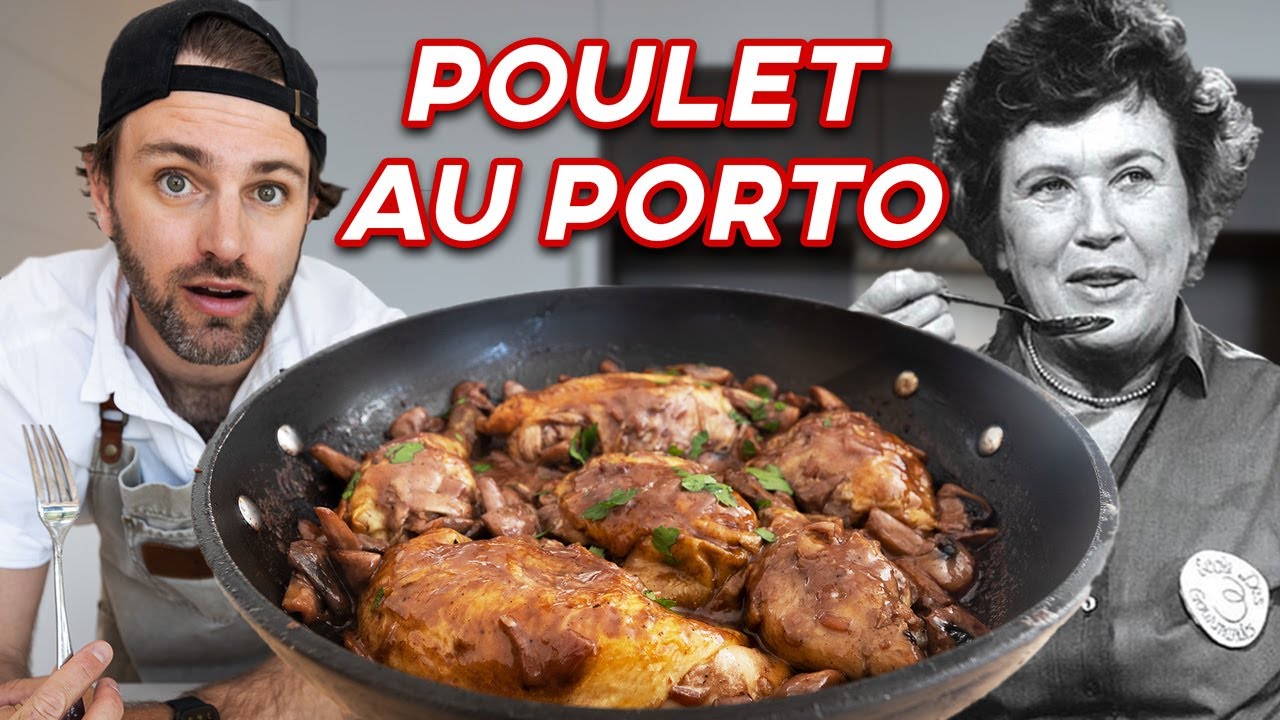 We start with Julia Child’s famous roast chicken recipe, from there we make a delicious cream and mushroom sauce with port wine… FLAMBE… a perfect dinner. I’m making my way through Julia Child’s “Mastering the Art of French Cooking” cookbook… like the movie “Julie & Julia”. Today I make Poulet au Porto.