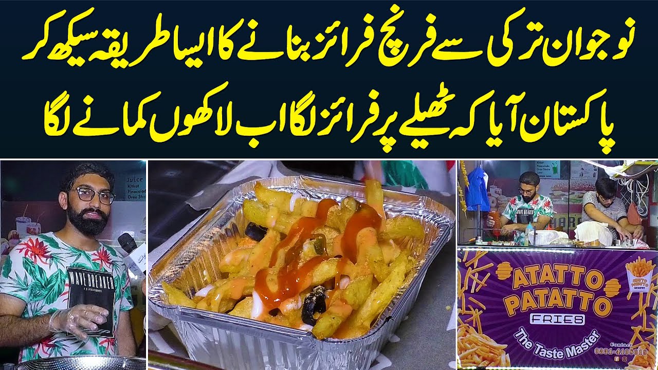 Hamza who is a graduate of NUML university has started his food corner at PIA road Lahore. He has introduced Turkish style French fries for the first time in Pakistan. UrduPoint anchor Usman Butt has taken us to visit the place. How Turkish fries looks like and what is their specialty, have a look in the video