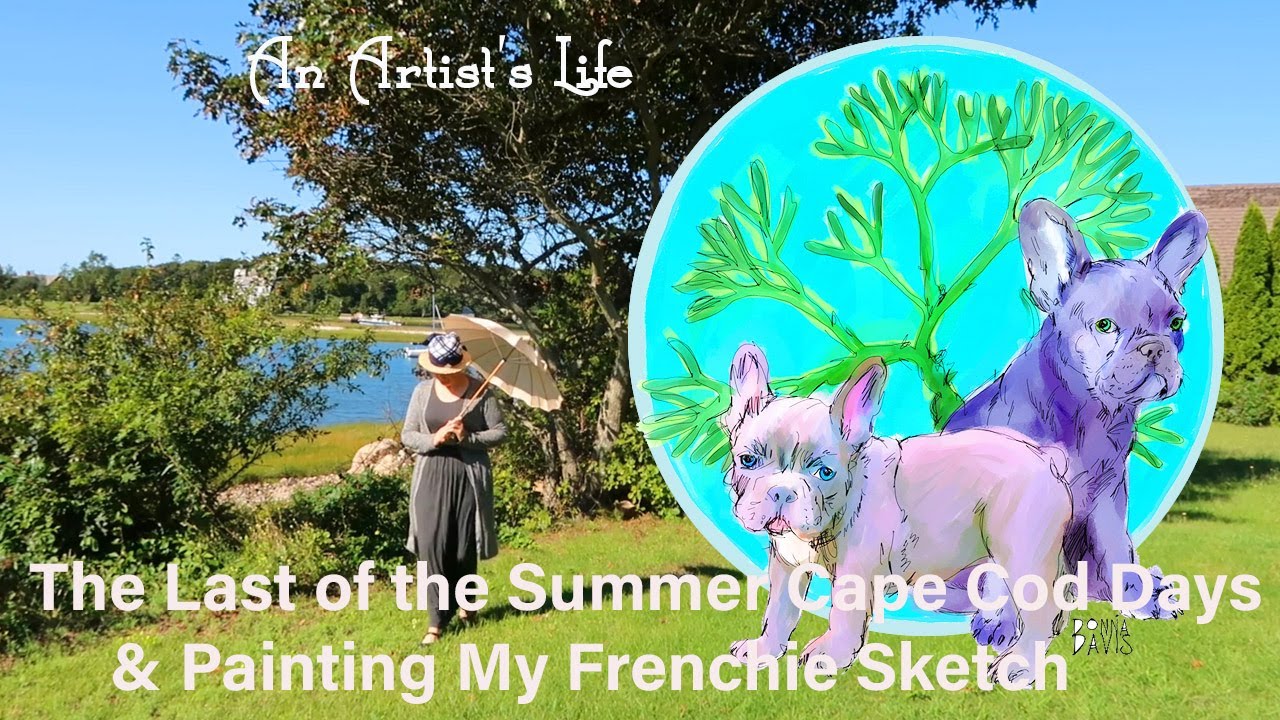 Let’s enjoy the last of the Summer Cape Cod Days, in the Flower Garden, fruit cage and adding some colour to my French bulldog sketch. The last of the Summer wine is sweeter by the sea, so come join me.