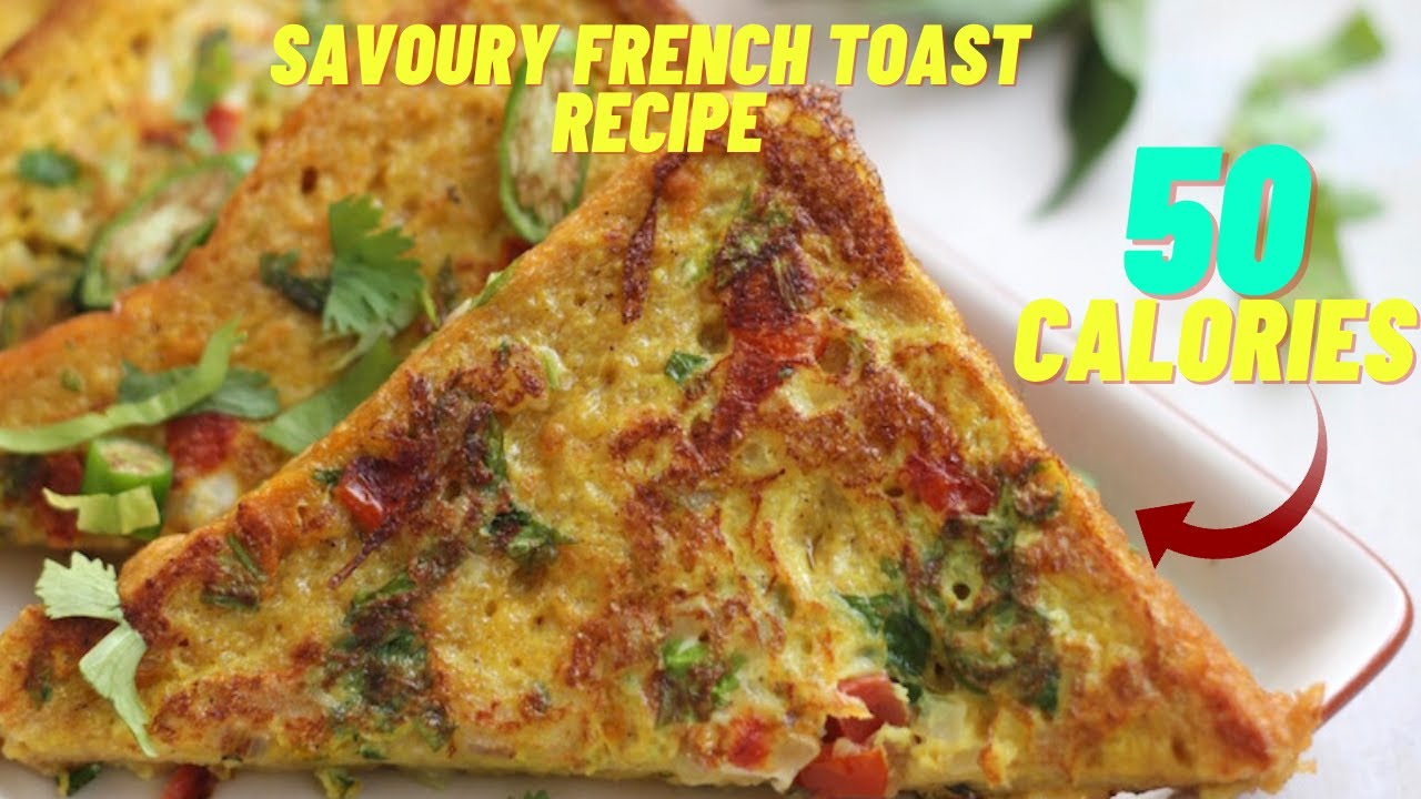 Try this delicious savoury french toast recipe for your breakfast. Each half has 50 calories. The whole recipe has 200 calories.