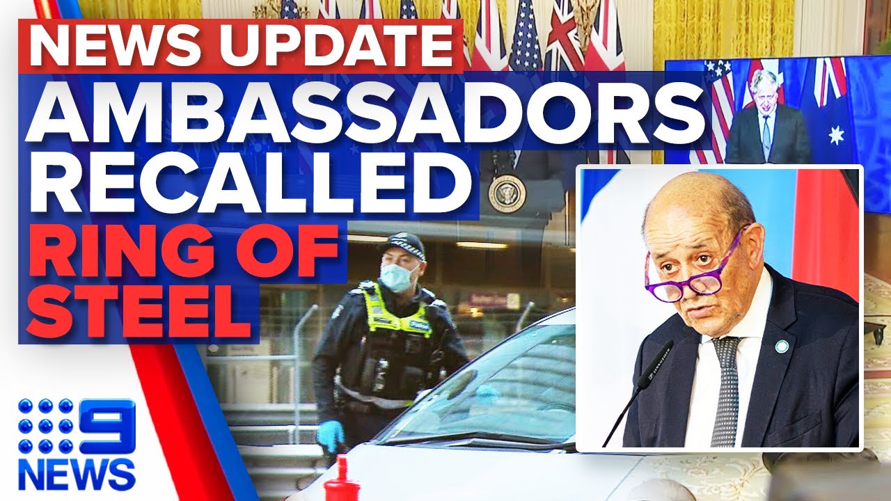 French ambassadors to Australia and the United States are being recalled to Paris after the AUKUS Pact saw Australia sign a new submarine deal. Melbourne police have set up a ring of steel around the CBD in a bid to stop a planned anti-lockdown protest. Subscribe and 🔔: | Get more breaking news at 9News.com.au:
