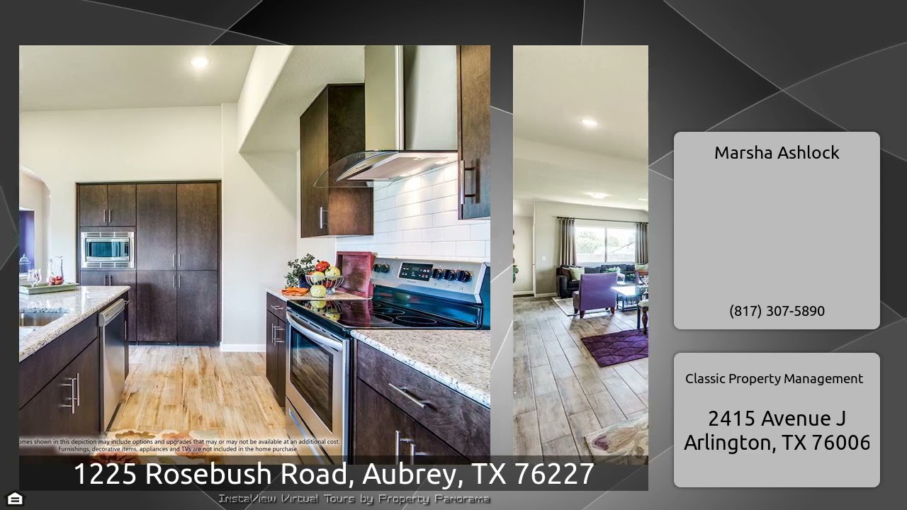 The Virtual Tour for the property at 1225 Rosebush Road, Aubrey, TX 76227 listed for $369,054: Other homes for sale by Marsha Ashlock of Classic Property Management: New Build from Bloomfield Homes, est. complete April 2022! Single story with 3 beds, 2 baths, and open concept living space. Classy Wood-look Tile throughout. Modern Gourmet Kitchen with gas cooking on SS Appliances, Quartz countertops, flat panel cabinets, and gorgeous Marble Mosaic backsplash. Kitchen totally open and flow right into the Brkfst Nook & Family room, plus large windows bring in natural light. French Doors at the …