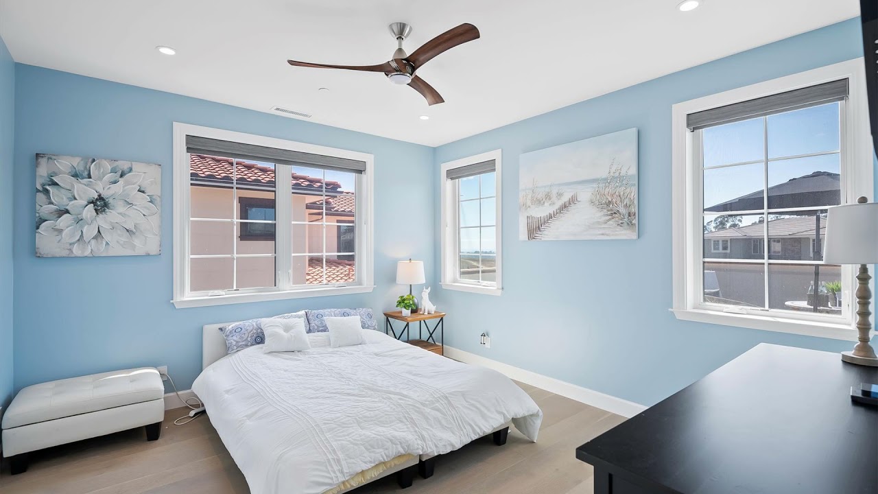 See the Property Website! :: Gorgeous newer home with spectacular ocean views from second story 85 square foot deck and mountain views from the 568 square foot back entertainer?s deck. Formal entry with custom light fixture. The great room features high wood beam ceiling, gas fireplace, large dining area, and sliding doors to backyard deck. Gourmet chef?s kitchen with Quartz countertops, tile backsplash, farmers sink, stainless steel appliances, GE Caf 6 burner stove and oven, hood over range, built-in GE Caf microwave, built-in GE Caf warming drawer, GE Caf dishwasher, large center island with breakfast bar, custom light fixtures. Separate office with mountain views. First level with 2 bedrooms and full bathroom with lighted mirror, Quartz vanity & tile surfaces. Laundry room with sink and built-in cabinetry. Large upstairs loft family room and sitting area with double French doors to huge deck and vast ocean views. 2 additional bedrooms upstairs, one with ocean views and ceiling fan. Full bathroom with lighted mirror, Quartz vanity & tile surfaces. Master suite with his & her closets including built-ins, ceiling fan, and balcony with mountain views. Master bath with lighted mirror, double sinks with Quartz vanity, floating tub, large stall shower. Throughout the home you will find wide plank wood floors, high ceilings, and recessed lighting. 2 air conditioners with multi-zone thermostats. 80 gallon water heater with re-circulating pump. Backyard fully fenced entertainer?s deck, additional gated yard with grass area and mature landscaping. 3 car garage with 2 EV chargers (120 & 240 Volts). Paver driveway.