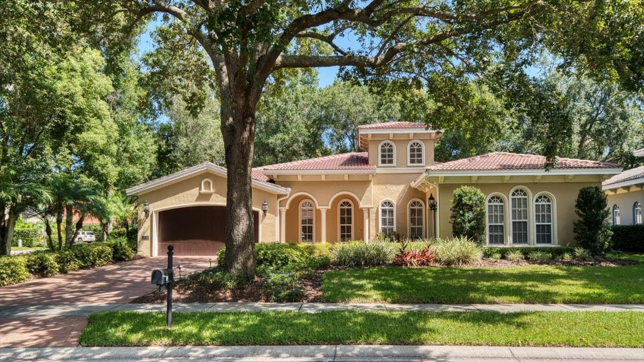 See the Property Website! :: Jorge Morejon – Keller Williams Tampa Properties – 813.760.1400 :: New Floresta Community, a private, gated enclave of 31 homes tucked under mature oaks. This Bayfair built stately residence is the Eucalyptus model on a corner lot with 3211 sq ft htd, 4 bedrooms, 3.5 bathrooms, 3-car garage, a den, gourmet kitchen, wood cabinetry, granite counters, built-in ovens, formal living and dining, 3-way split-floor plan with ceiling heights are 10′ throughout except for entry rotunda, foyer hallway, family room and kitchen all have 12′ flat ceilings. There are tray ceilings in formal areas and Master bedroom and den. Upon entry to rotunda from bricked paved porch, your eyes will be embellish by the ceiling heights, chandelier, formal areas, den and french doors at family room with views of lanai and rear yard. Wood floors throughout except bedrooms that have new carpeting, house is neutral colors and well maintained. The lanai is 24×14, brick paved and screened with area for an outdoor kitchen. There is a gas fireplace in family room with entertainment built-ins and gas water heater. According to the seller stubbed for other gas appliances as desired. Driveway and autocourt are brickpaved which adds to the elegance of the curb appeal. Masterbedroom suite is large with access to lanai and views of lush landscaped rear yard. The Master bathroom has tub, dbl vanities and large separate shower with his/hers closets. There is a separate hall to access bedroom 3 & 4 that share a bathroom, the 2nd bedroom which may be a guest or mother-in-law room has its own bathroom that may be accessed from lanai. All bedrooms have walk-in closets. The den/office has built-ins and accessed through 8′ french doors. All bedroom doors are 8′ and back wall of family room has 3-french doors to access screened lanai. Schedule your showing today as it will not last long.