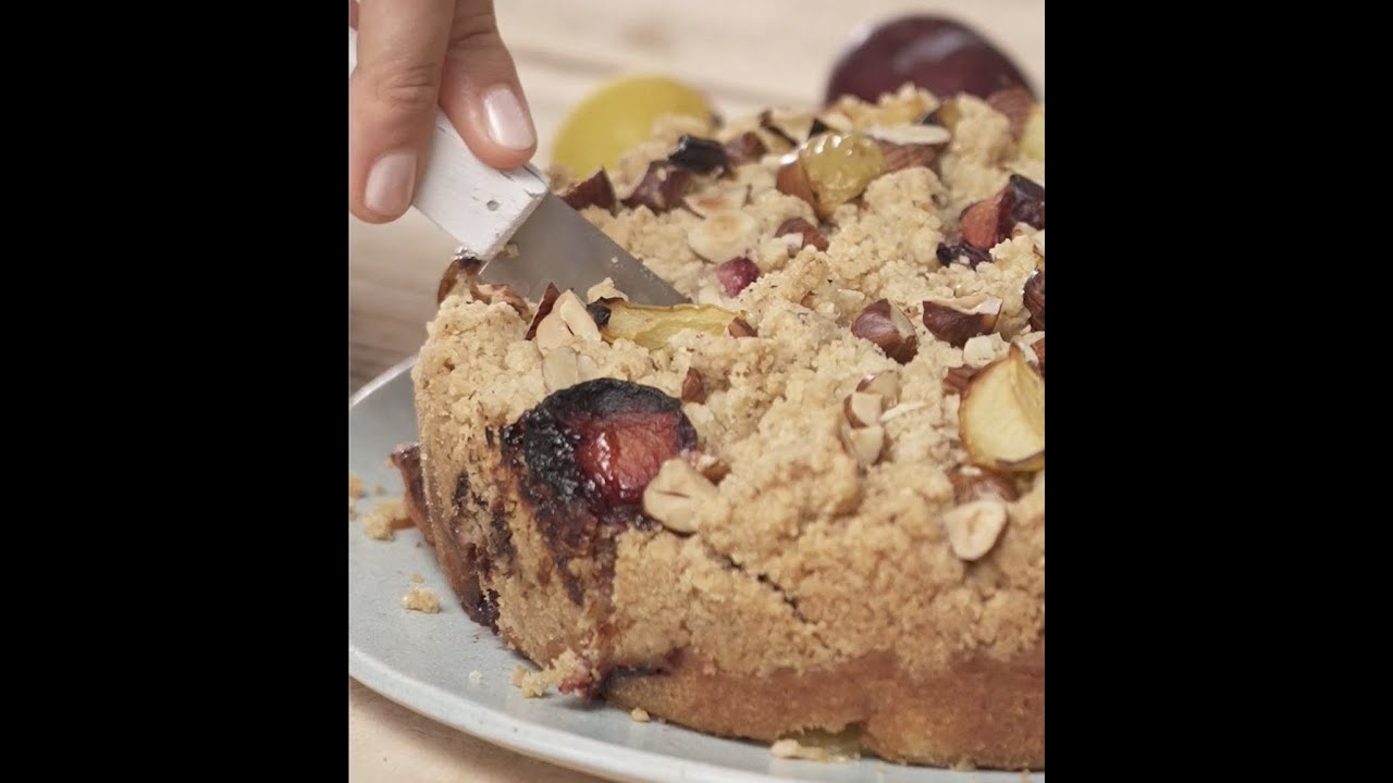 French plums and hazelnut, this is a cake that really celebrates the season. Enjoy a slice with your mid-morning coffee or serve it warm for dessert. French plums include Reines-Claudes, Mirabelles, Quetsch plums, Ente plums, and many more besides. You can find many different colors for a rainbow cake!