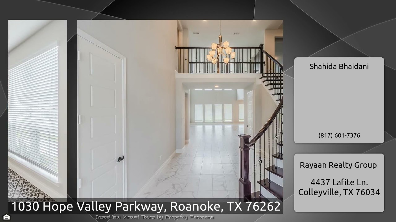 The Virtual Tour for the property at 1030 Hope Valley Parkway, Roanoke, TX 76262 listed for $799,000: Other homes for sale by Shahida Bhaidani of Rayaan Realty Group: Gorgeous Modern Two-Story 5 Bedroom,4.5 Bathroom House Features Open Floorplan With Huge Living,High Ceiling,Hardwood Spiral Stairs, Study With French double Doors And A Beautiful Expanded Outdoor Living Area. Gourmet Kitchen Boasts A Large Island With Breakfast Bar, Walk-In Pantry, Abundant Cabinet ,Upgraded 3 Feet Stove & SS Appliances. Beautiful Master Suite & Second Bedroom Down! Master Features His & Hers Vanities, Garden …