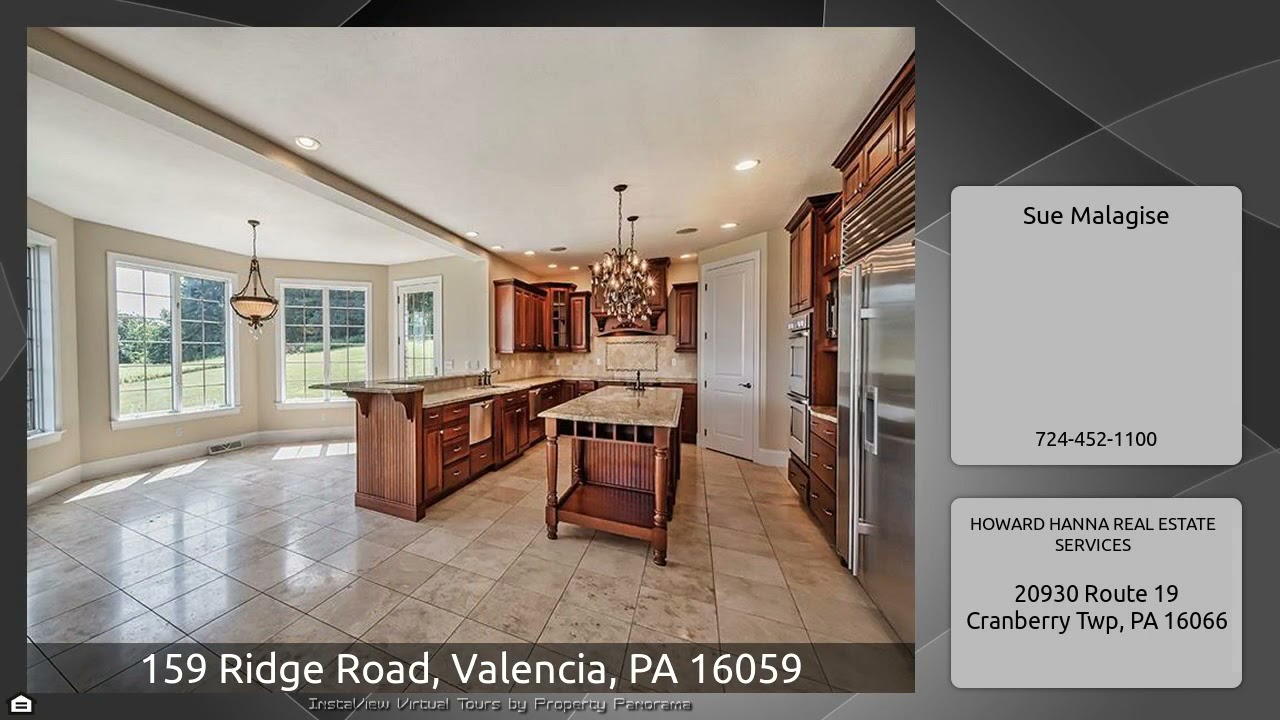 The Virtual Tour for the property at 159 Ridge Road, Valencia, PA 16059 listed for $1,000,000: Other homes for sale by Sue Malagise of HOWARD HANNA REAL ESTATE SERVICES: Stunning CUSTOM BUILT Brick & Mortar Estate Home Situated on 2.75 Lush Acres in Mars Area School District! QUALITY Found Throughout! Magnificent Two Story Grand Foyer! Elegant Open Dining Room and Private Study with Glass Paneled French Doors to the Right and Left of Entry, respectively. Great Room/Family Room w/Stone Fireplace, Hardwood Floor, & Wall of Windows! Adjacent is the Gourmet Kitchen with Travertine Tile Flooring, …