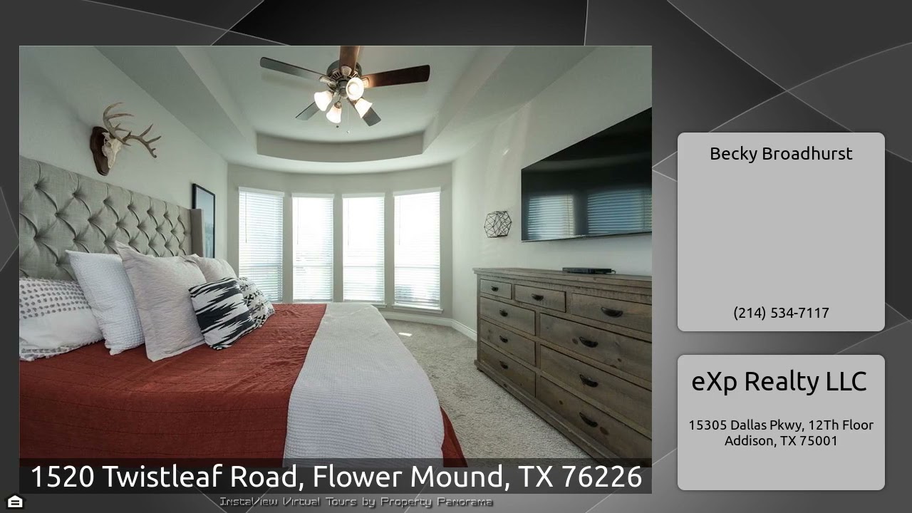 The Virtual Tour for the property at 1520 Twistleaf Road, Flower Mound, TX 76226 listed for $600,000: Other homes for sale by Becky Broadhurst of eXp Realty LLC: Beautiful highly sought out Canyon Falls in Argyle ISD. This home has 5 bedrooms and 4.1 baths. French doors into the study sets this two-story entry, neutral color pallet throughout and easy to maintain wood like ceramic tile. Formal dining opens to kitchen and living space. Gourmet kitchen with stainless steel appliances, large island, quartz countertops & walk-in pantry. Kitchen opens up to living room & over looks large …