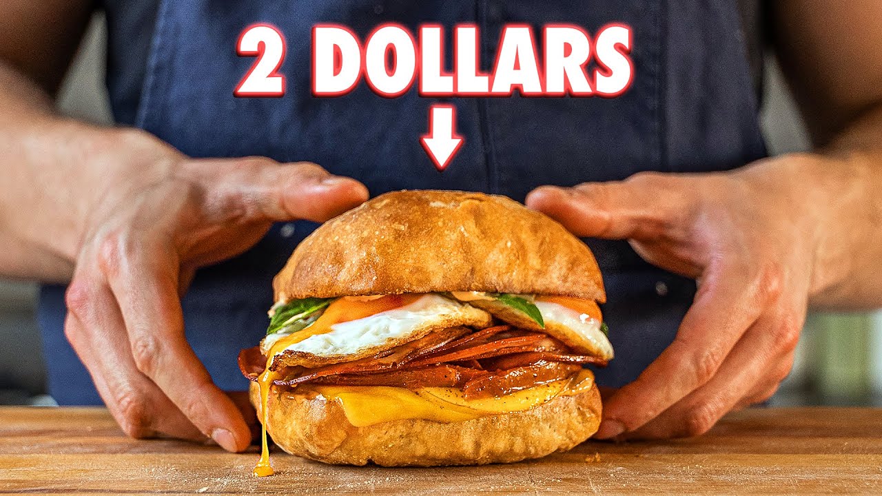 The best and fanciest homemade breakfast sandwich should be 2 dollars… and so we did that.