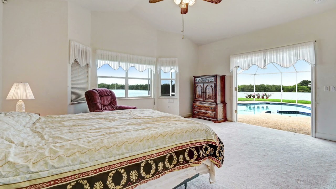 Spectacular waterfront with amazing sunsets located on the fabulous Space Coast of Florida in beautiful Merritt Island. This 3 BR 2 BA 2 car garage home features 2105 Sq. Ft., 212′ of waterfront, newer seawall, hurricane shutters, metal roof, gourmet kitchen with Silestone tops, center island with cooktop, wall oven, pantry, newer ceramic tile flooring, large master suite with pool and water views, master bath features his and her closets plus a linen closet, oversized vanity with double sink and large shower. Living/Dining Area with sliders leading to screen enclosed pool with heated spa. French doors and oversized sliding glass doors provide for sweeping water views. Volume ceiling and skylights compliment the interior space. Fish and boat from your back yard, watch dolphins and manatees play or head to the famous Cocoa Beach; just 10 minutes away! Minutes to Port Canaveral to watch cruise ships, rocket launches or enjoy a variety of restaurants. 45 minutes to Orlando Airport. Close to shopping, I95 and other major roadways.