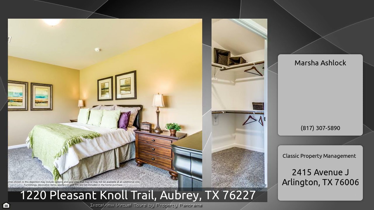 The Virtual Tour for the property at 1220 Pleasant Knoll Trail, Aubrey, TX 76227 listed for $369,922: Other homes for sale by Marsha Ashlock of Classic Property Management: New construction from Bloomfield Homes, est. complete Mar-Apr 2022! Charming single story offering 3 bedrooms, 2 baths & 2-car garage. Open living space, large windows, and clean lines! Private Study with French Doors, great for work from home. Beautiful Wood-look Tile throughout. Gourmet Kitchen with Granite countertops, contemporary cabinetry, gas cooking on SS Appliances, and matching SS & Glass vent hood. Primary …