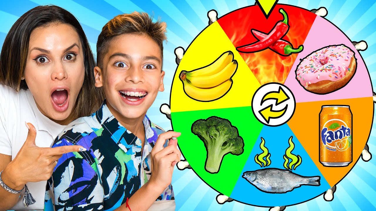 Spin The Wheel & EAT Whatever COLOR FOOD It Lands on!! Ferran, Ali & Andrea do a eating only one color food challenge for 24 hours!!!