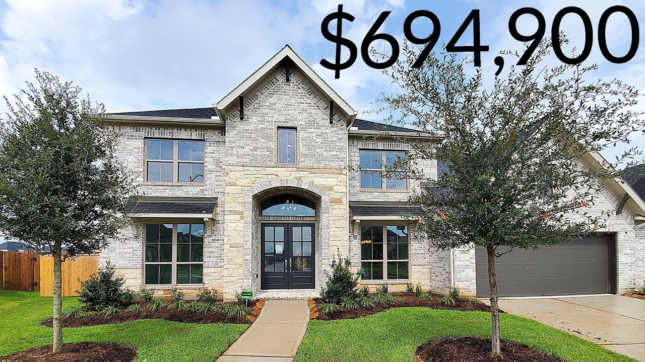 PERRY HOMES NEW CONSTRUCTION! Curved staircase highlights two-story French door entry. Home office with French doors and formal dining room set at entry. Two-story family room with wall of windows and a wood mantel fireplace opens to kitchen and morning area. Kitchen features walk-in pantry, 5-burner gas cooktop and island with built-in seating space. First-floor primary suite with curved wall of windows. Dual vanities, garden tub, separate glass-enclosed shower and two walk-in closets in primary bath. First-floor guest suite offers private bath. A game room, media room and three secondary bedrooms are upstairs. Extended covered backyard patio. Three-car garage.