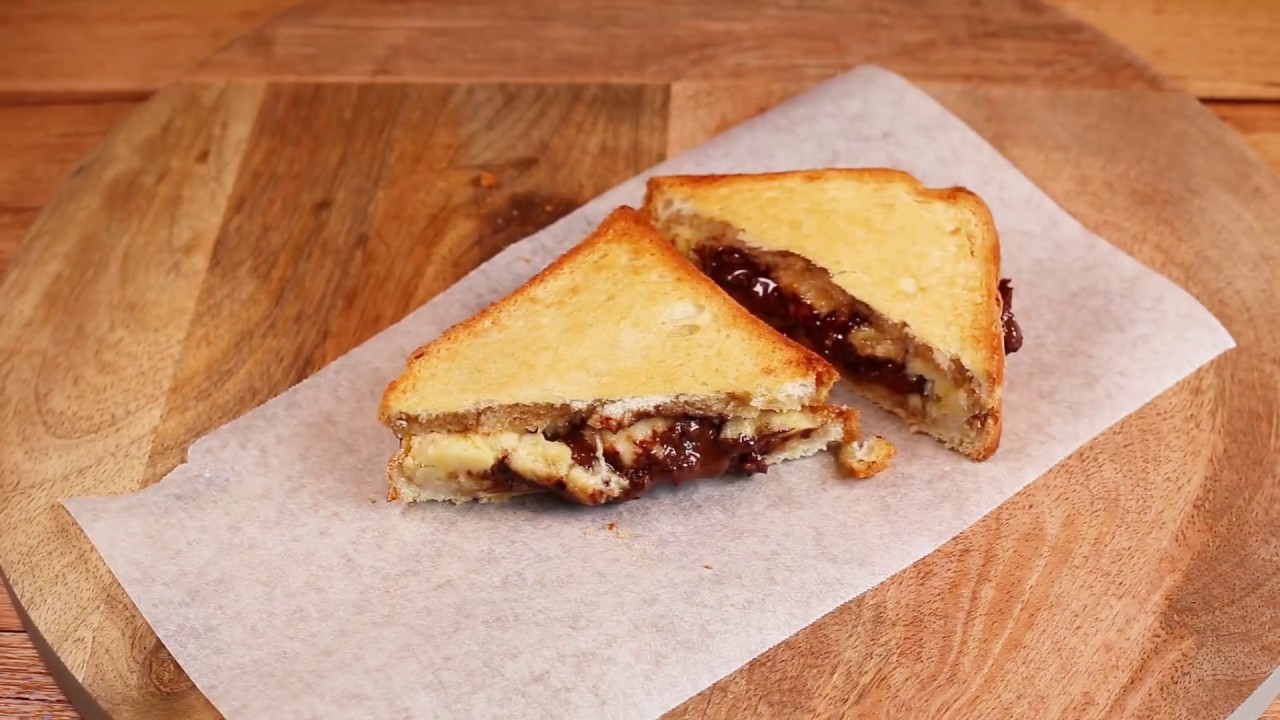 the last one is the ultra classic French grilled sandwich for kids filled with hazelnut chocolate and banana.