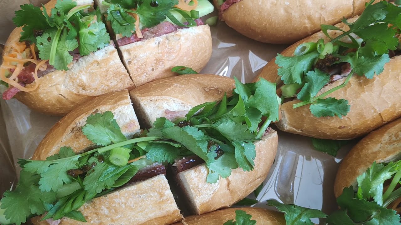 Light and crispy mid-sized baguette, stuffed with slow-cooked BBQ pork, pate, pickled carrots, crunchy cucumber batons, homemade butter, spring onions, fresh coriander and chilli.