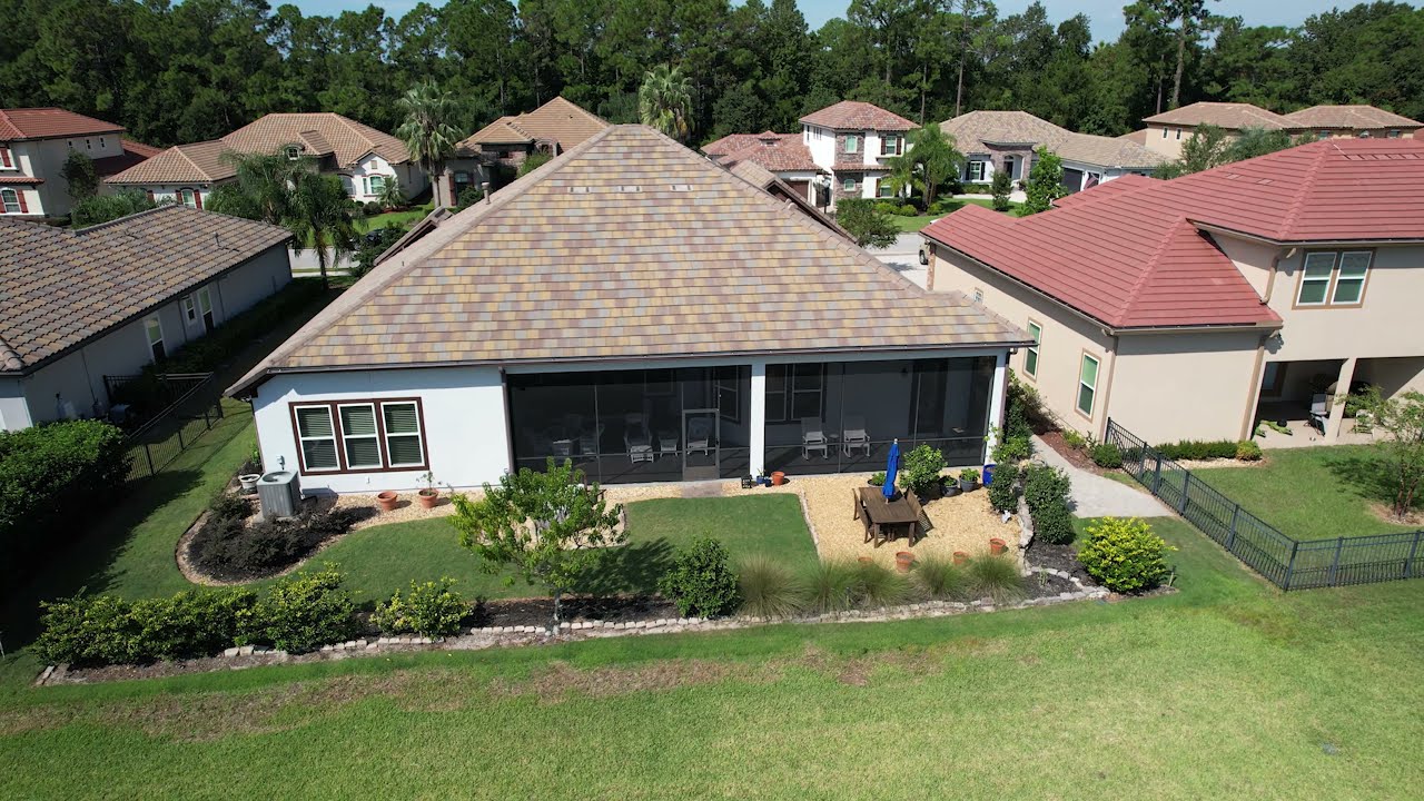 Welcome home to this stunning French Country style home with tile roof! Move right into this immaculate 1-story home in a great community w/o CDD fees. Kitchen features French door refrigerator, a Wolf gas top and custom wood vent hood, double ovens, wine fridge, and large walk-in pantry. Many great features like wood floors throughout, coffered ceiling, stone fireplace, guest suite, and covered porch with summer kitchen. Owner suite has door to patio for enjoying your morning coffee, his and her closets, and a walk in shower with double shower heads. Office can be 4th bedroom. This lot is over 80′ wide and located in the back of the community in popular gated community Palermo w close proximity to Mayo, the Beaches, and St Johns Towncenter for upscale restaurants and shopping.