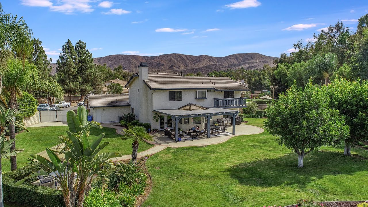 VIEW LOCATION PRIVACY SPACE One homeowner, first time on the market. Its now a new opportunity to live in this gracious setting. At the end of a cul de sac, sitting on 3/4 of an acre, pie-shaped lot, The unobstructed view permits you to enjoy beautiful sunsets over the mountains and unforgettable outdoor entertainment in your own backyard. Many events were hosted in this beautiful and spacious yard. This Fountainwood home is surrounded by luxurious, custom built and equestrian properties. The welcoming red brick walkway takes you inside of this immaculate home, awaiting its new owner. A charmer that will melt all hearts. Extensive upgrades have been made on this 1987 (Year Built) 2800 sqft home. There are 4 beds, 3 baths, including a convenient bedroom and a full bathroom with a walk-in shower downstairs. The master bedroom opens to a balcony with Indescribable views of surrounding mountains, private master bathroom with dual sink, separate shower and tub and walk in closet. 2 additional large bedrooms upstairs have access to the 3rd bathroom. Exceptionally well designed Gourmet kitchen was remodeled with stunning granite countertops, beautiful cherry cabinets with self-closing doors and pull-outs, Viking appliances, 6 burner cooktop, dual oven and large center island. The kitchen connects to a breakfast nook by the bay window and a comfortable family room that boasts a wood burning brick fireplace and a wood mantel. The lovely and spacious living room and dining room are open and connect to the kitchen. Youll be enjoying laundry day a bit more in this roomy laundry room that connects to a cozy front room den (could be a 5th bedroom/craft room/office). Can’t go unnoticed are the gleaning wood flooring, crown molding and wood door framing throughout the house. Additional upgrades are newer windows in front and French door to the backyard. 3 Car Garage, wide gated RV/trailer access. Lush landscape with beautiful roses and mature trees. Direct access to horse trails, near hiking trails, Ronald Reagan Presidential Library, Coyote Hills Park, schools and shopping. A retreat near all conveniences.