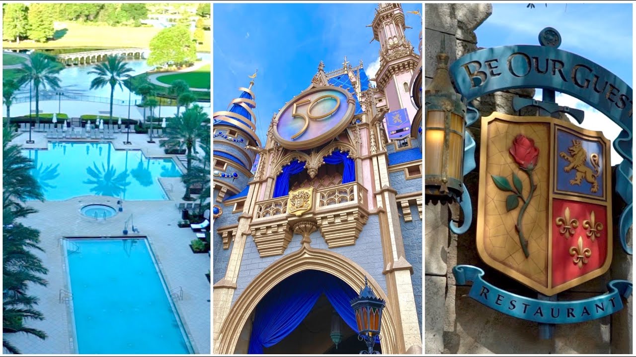 It’s our first full day back in Walt Disney World and we decided to make it a relaxing day to gear up for the 50th Anniversary festivities tomorrow. While Steve works in the hotel room, Mike & Caleb go for a swim before hitting up Magic Kingdom for lunch at Be Our Guest Restaurant. Later that evening, we lounge in our room at the Waldorf Astoria Orlando and order room service.