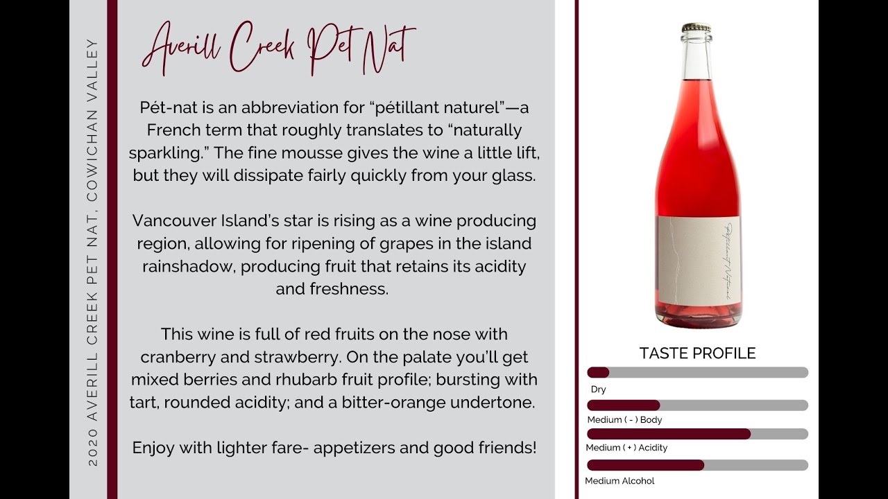 Pét-nat is an abbreviation for “pétillant naturel”—a French term that roughly translates to “naturally sparkling.” The fine mousse gives the wine a little lift, but they will dissipate fairly quickly from your glass.