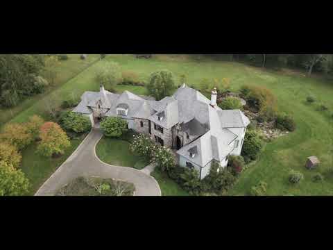 Luxury meets ecology in this sustainably built French style Country Manor in the heart of Hopewell. Built in 2010 with exquisite attention to detail, from locally sourced materials, this is a ‘healthy home’ in which you can enjoy living an uncompromising luxurious lifestyle within walking distance of local restaurants and shops. The grand stone and stucco house is discreetly nestled away from view, but once you enter the circular driveway, the beauty and craftsmanship of this bespoke home become immediately apparent. Set in 10.5 acres of picturesque, landscaped gardens and gently sloping lawn, the property includes a forest, a meadow and an orchard. The magnificent arched doorway, slate roof and architectural details draw you in. Upon entering the home your eye is immediately drawn to the 20ft ceilings, Vermont Douglas fir columns and the intricate ironwork of the railings and balustrades, forged by a local artisan. The modern, open plan first floor incorporates a large, double height family room centered around a wood burning fireplace with marble surround, a gourmet eat-in kitchen with double Subzero fridge freezer, Wolf double oven with bespoke artisanal cooker hood and soapstone countertops, finished with a custom zinc bar-countertop designed by Chris Plummer of Metallo Legno. Additional large dining room. A sunroom with a soapstone floor sits off the kitchen with doors onto the partially covered patio. A sumptuous master bedroom suite on the first floor with marble ensuite bathroom and large walk-in closet. A butler’s pantry, office, powder room and laundry complete the first floor. Three large bedrooms all with en-suite bathrooms and two with walk-in closets are filled with light on the second floor. A second laundry room (not hooked up) with a laundry chute. A very large separate guest apartment with bedroom, walk-in closet, living room, kitchen and bathroom has its own private entrance and heated one car garage. Two further garages servicing the main house are also heated underfloor. Full walk-out finished basement with 8 foot ceilings is a flexible space for entertaining, exercising etc. A full bathroom, walk-in closet, and a large separate workshop make this space extra versatile. Several utility rooms house the electrical, geothermal and solar electric systems. Nothing has been overlooked in the design of this energy efficient and thoughtfully built home.