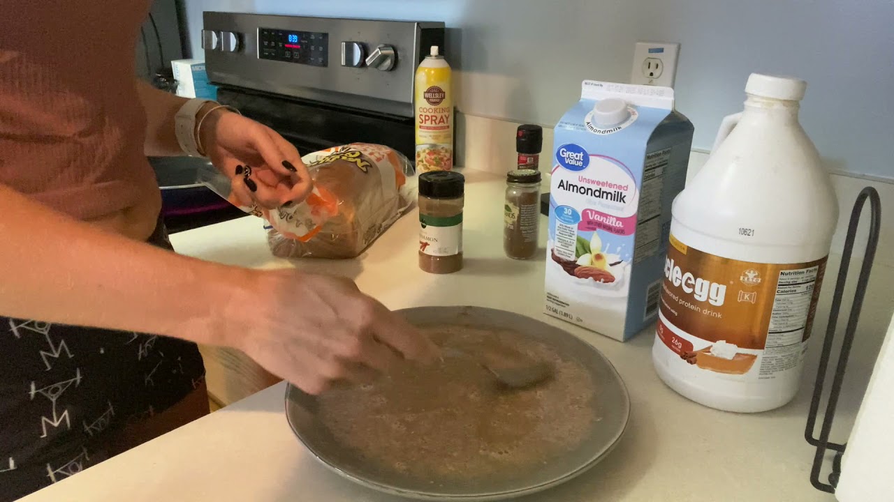 2) Dip both sides of bread evenly into egg/protein mixture