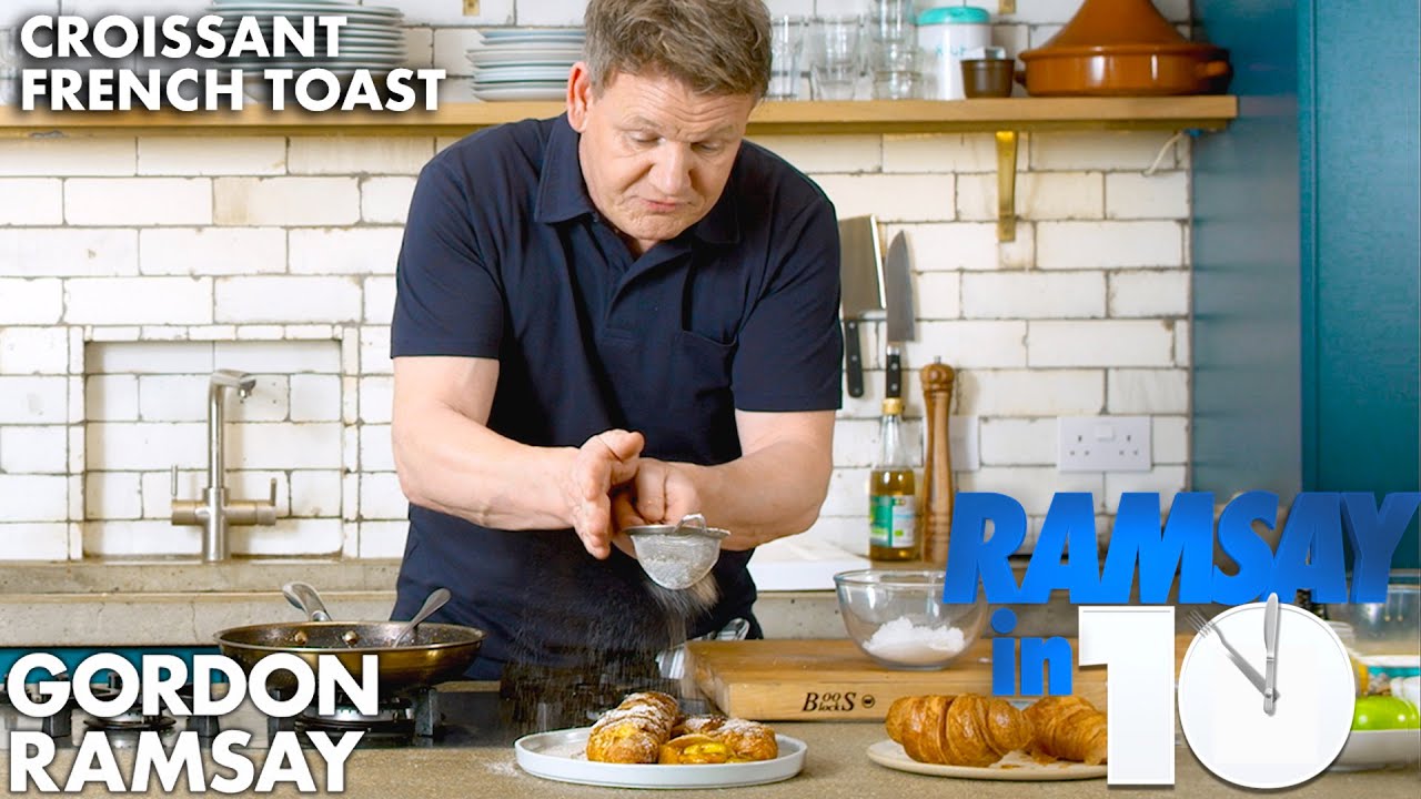 Brunch is served! Gordon is serving up a delicious Croissant French Toast in UNDER 10 minutes. This Ramsay in 10 dish is perfect for brunch, dessert or breakfast served stuffed and covered with caramelized apples. This is perfect for the weekends or with leftover croissants.