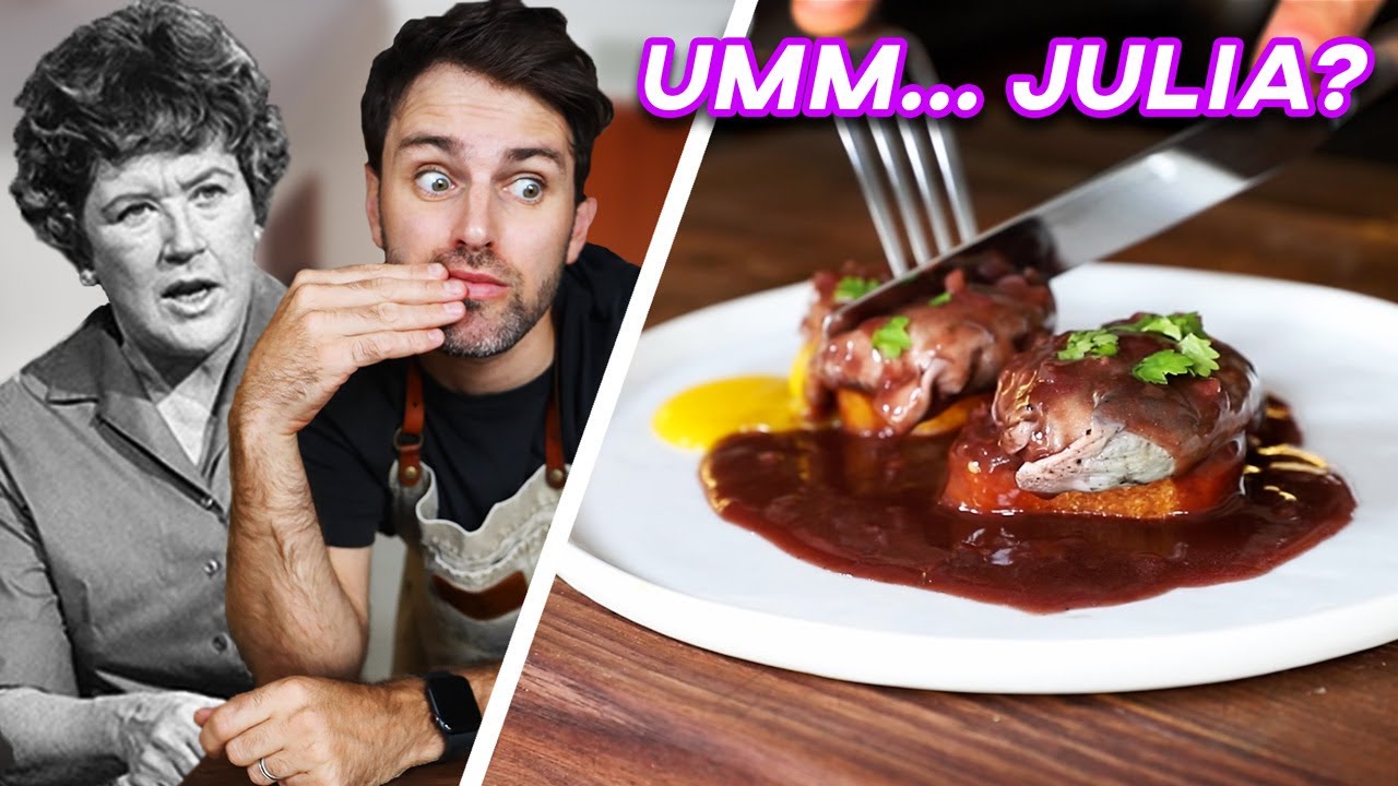 Julia Child’s Oeufs à la Bourguignonne or Eggs Poached in Red Wine.