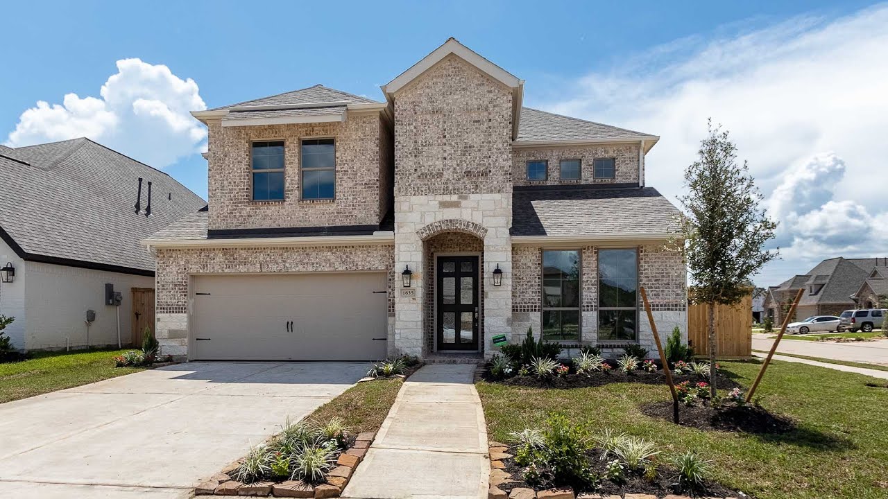 Sienna is one of the most desirable, top-selling master-planned communities in Houston and ranks Top 5 Suburbs of Houston and #16 nationwide. This 3048 sq. ft. plan offers five bedrooms, four full bathrooms and one half bathroom. Home office with French doors set at two-story French door entry. Open kitchen hosts inviting island with built-in seating space. Two-story dining area opens to two-story family room with wall of windows. First-floor primary suite with wall of windows. Dual vanities, garden tub, separate glass-enclosed shower and two walk-in closets in primary bath. A guest suite with full bath is downstairs. Two secondary bedrooms, a game room and media room with French doors are upstairs. All bedrooms include walk-in closets. Covered backyard patio. Mud room off three-car garage. #perryhomes
