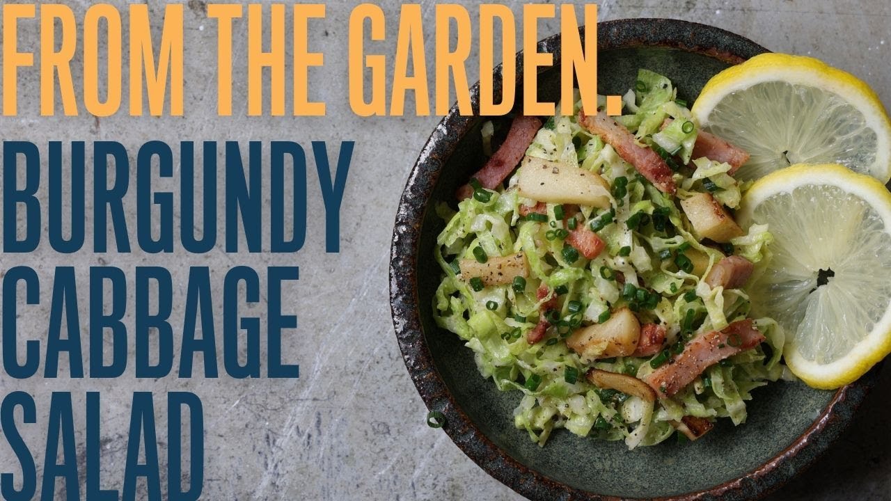 In this new series we are using our home grown vegetables and use them in simple regional recipes. to day we are making a burgundy style cabbage salad with apple and bacon
