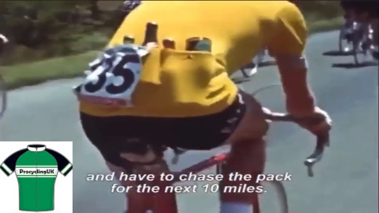 During the 1962 Tour de France, riders raid the local cafes in search of refreshments. Beer, champagne, red wine are all taken to keep riders going on a hot day in France. The clip comes from the Louis Malle documentary about the 1962 Tour de France – Vive le Tour! – the full version of which can be found on Youtube elsewhere. Jean Bobet, brother of 3-time Tour de France winner Louison Bobet, provides the French voiceover.
