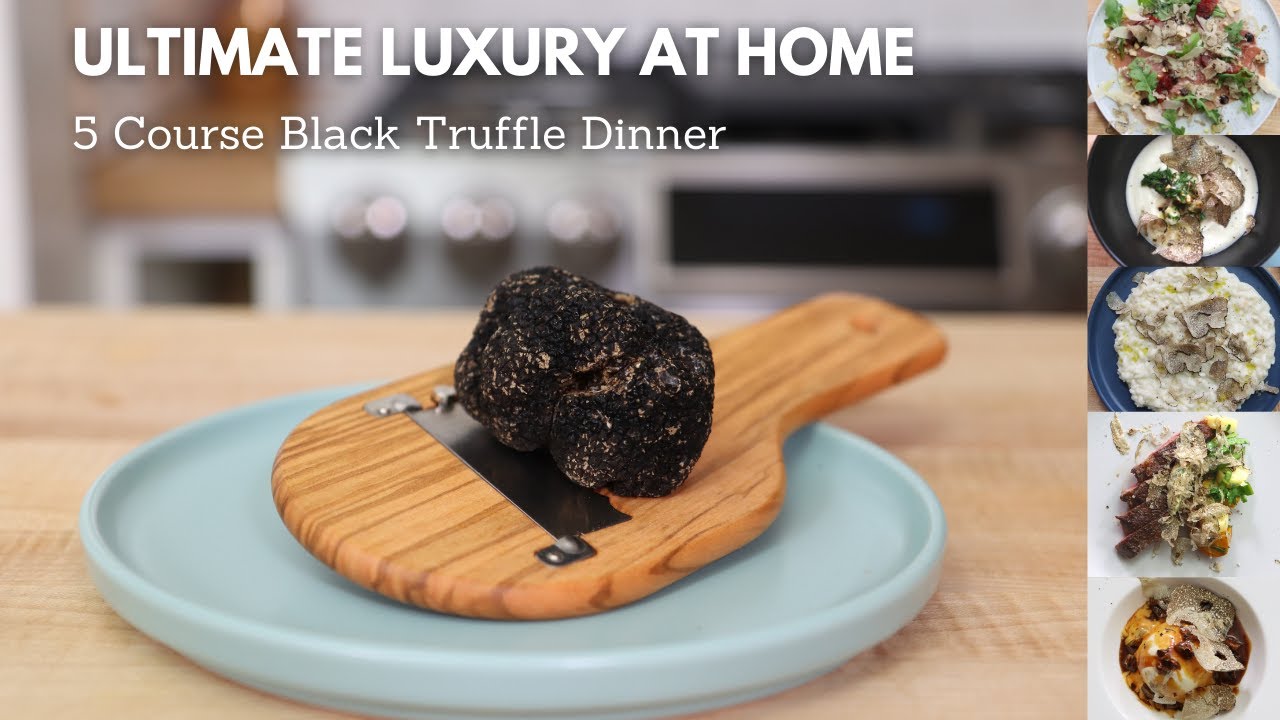 I’ll show you how to make a 5 course dinner black truffle dinner at home that’s easy but still showcases truffles. These 5 courses would be great on their own, but the truffles just take it to the next level. Truffles and caviar and two things that scream luxury, but paying for them in a restaurant is expensive. So let’s cut out the middle man and make a great dinner at home with them.