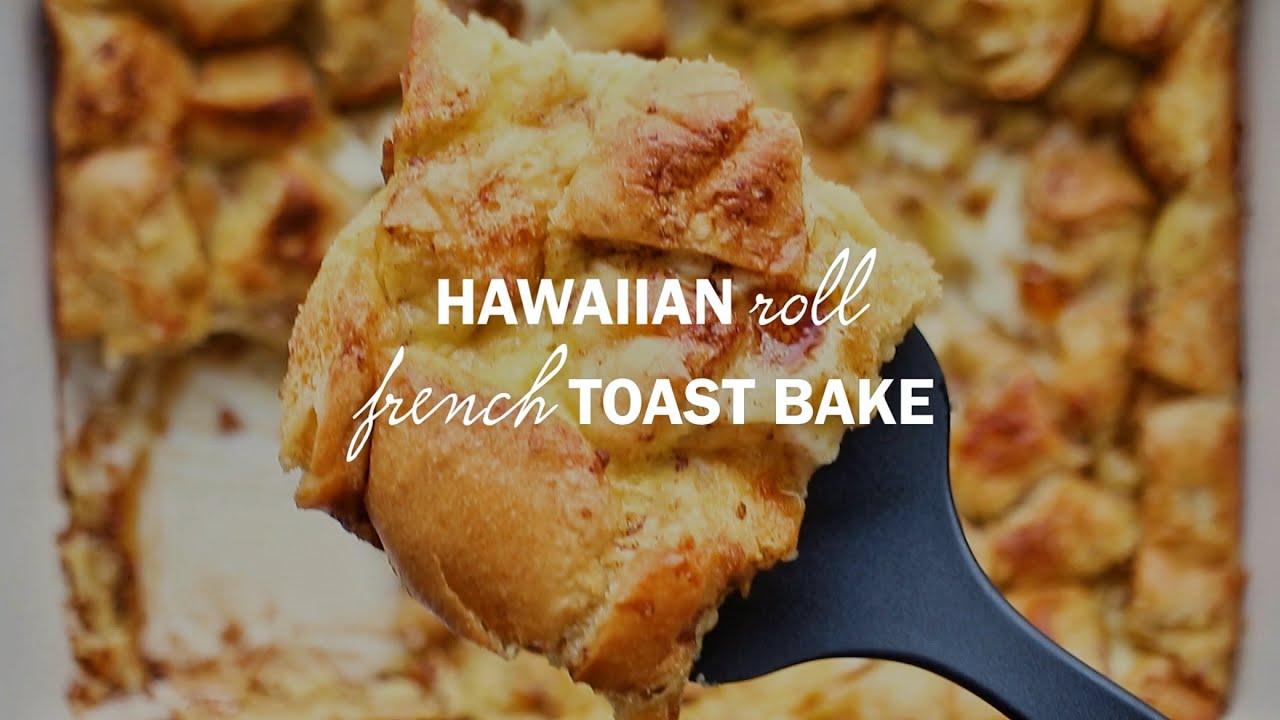 I’ve got a great, guest-pleasing recipe for holiday mornings: King’s Hawaiian Rolls French Toast Bake! If you didn’t know this already, those delicious little nuggets of sweet bread are super versatile, and useful for way more than a Thanksgiving side. This easy French toast casserole is great to serve on busy holiday mornings when you have hungry guests since the prep is minimal and most of the cooking time is passive. Using sweet Hawaiian rolls gives this French toast bake a little something special.