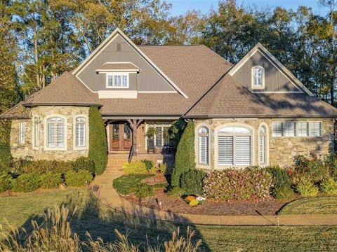 Exquisite Waterfront -French Country Manor-Whorton Bend. Private peninsula. Brick & stone exec home. 4 BR, 4 BA, grand foyer w/ DBL wooden doors w/glass & iron accents, cedar columns & wrought iron railing. Great room w/stacked stone fireplace & custom mantle. Dining room or office w/8ft beveled glass French doors. Granite kitchen w/SS appl, oversized ref & gas stove. Multiple ceiling heights, HW & tile, Plantation shutters & drapes. Koi pond, beach entry pool w/waterfall. Lg pavililion w/rock WB fireplace. Outdoor kitchen w/grill, griddle, sink & fridge. Outdoor BA by pool. Pier at river w/lighting & electricity. Professional landscaping, surround sound & alarm system. Stunning home!