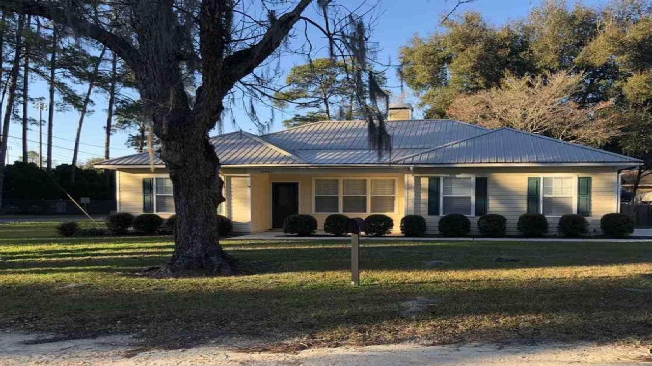 3/2 (Newberry) Nice home in quiet country town close to schools, shopping and restaurants just 15 minutes to Gainesville. Home has high ceilings, lots of big windows with plantation shutters, laminate wood and tile floors throughout. Big living room with wood floors, wood burning fireplace with brick hearth and mantel full wall of windows with plantation shutters, Large Kitchen and dining room or family room combination has tiled floors, upgraded stainless steel appliances and double oven. Lots of cabinet & counter space including an Island bar and built-in hutch. Dining room has full wall of windows and French door with plantation shutters. Formal Dining room or Den off kitchen with tray ceilings. Master bedroom also has tray ceilings, wood floors, & plantation shutters. Master bathroom with porcelain tile floor, tub/shower combination, large vanity, custom mirror and light fixtures. Mirrored closet doors open to walk in closet. Split floor plan that is separated with a modern sliding barn door has two guest bedrooms both with wood floors and plantation shutters. Hall bath has porcelain tile floor, tub/shower combination and clear story window. Utility room off kitchen with washer and dryer. Covered carport. Large fenced backyard