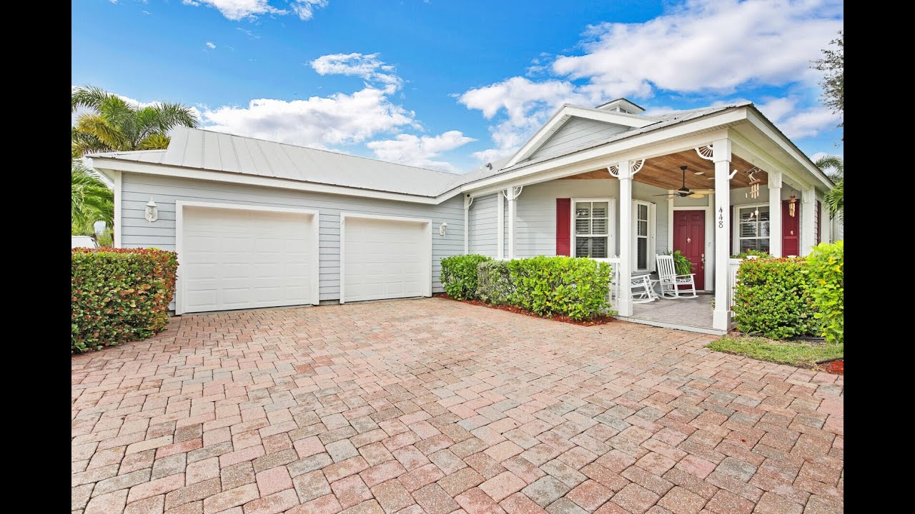 Welcome to this stunning Key West Style home in the community River Place on the St Lucie. This 3-bedroom 2 bath POOL home is immaculate. The corner lot has matured and lush landscaping which surrounds your brick paver driveway leading into the extended 2-car garage with enough room to park your truck. Association maintains lawns. The front porch welcomes you to stay a while. It features a tongue and groove ceiling. As you enter the home you will find volume ceilings, spacious formal areas and French door leading to your covered lanai. An open gourmet kitchen with an abundance of storage space with beautiful quartz countertops. Elegant backsplash. Seating at the center island. Stainless appliances, wall oven, appliance cabinet, large pantry, and drink/wine cooler.