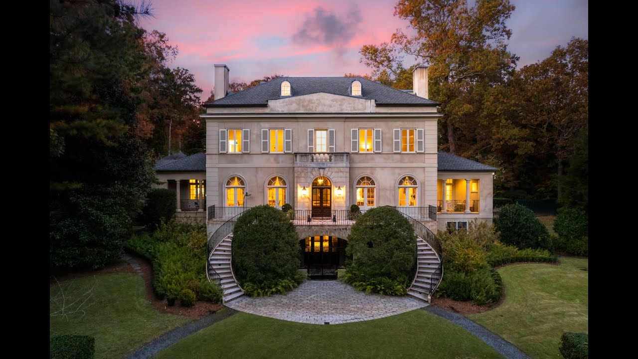 Situated high on a hill on 2 acres in Buckhead, this stunning Mediterranean Villa style residence was masterfully designed by Norman Askins, architect, in 2002. This home oozes with glamour. The rooms are very grand, 10-12 foot ceilings on all three levels, exquisite crown molding and door pediments throughout. Beautiful arched hallways perfectly symmetrical, in keeping with the Classical architecture style, run lengthwise through the house on both the main and terrace levels. The front living and dining rooms have floor-to-ceiling pairs of arched French doors, opening to a limestone veranda that stretches across the front of the house with breathtaking views of Atlanta! An interior hallway leads to the master wing, with an adjoining sitting room with heart of pine built-in bookcases and fireplace, his and her closets and bathrooms. Located on this same wing is one of the most extraordinary features of the home: the gracefully curved staircase with a wrought iron handrail and caste gold motifs that swoop from the terrace level all the way up to the top floor, culminating in an artfully designed wrought iron oval skylight. The upper floors house five bedrooms, an office niche and a center room designed as a study-library. Wide plank heart of pine floors run throughout main and upper level floors. The casual entertainment areas on the daylight terrace level complete the house. Located In the club style living room are a full-size bar and wine cellar. Additional rooms include the billiard room, state-of-the-art media center, workout room, and guest bedroom. Stone floors cover the entire terrace level. A sweeping lawn leads to the Provence-style guest and pool house with a bedroom, full bath, kitchen and living room overlooking the pool.