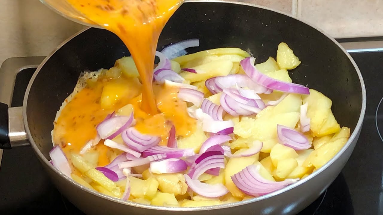 This is one of my favorite recipes. French fries and eggs is just an amazing combination. With all the added ingredients like red onions and fresh tomatoes it gets even tastier. Just try this recipe and you will love this and will cook it every week.