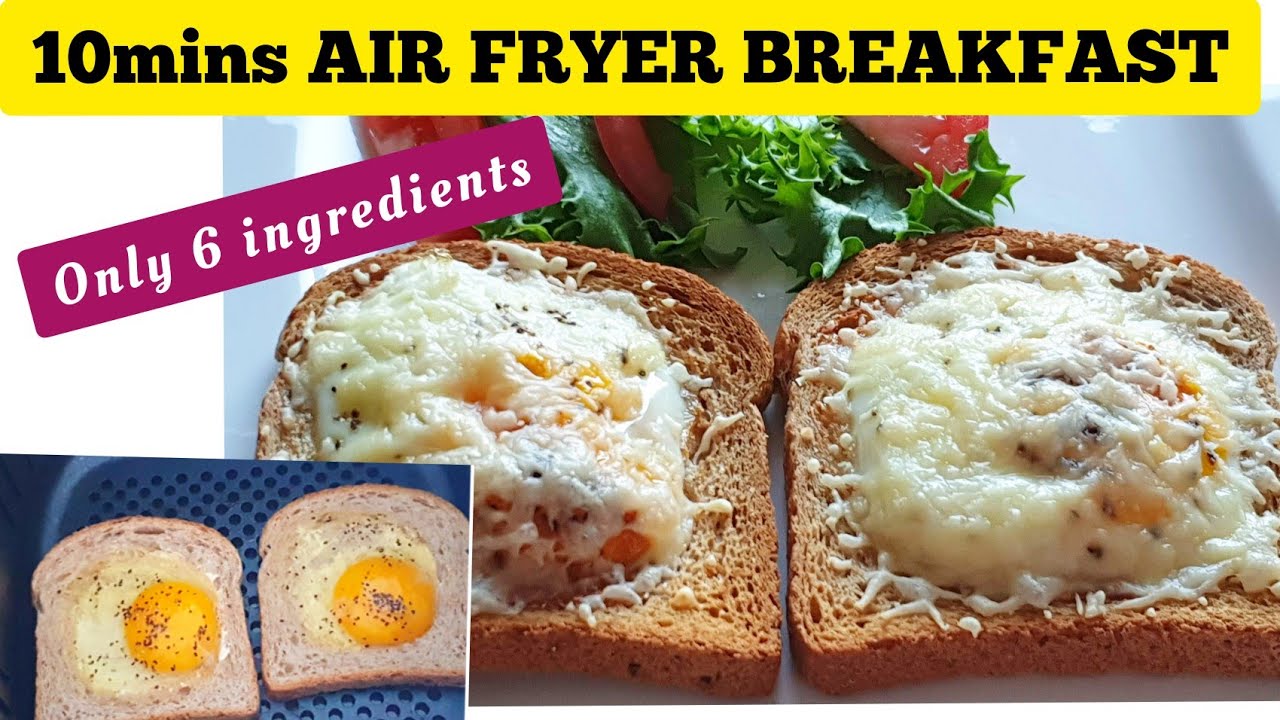 Air fryer Fried CHEESY EGG ON TOAST recipe for breakfast.With only 6 ingredients and in 10mins. Air fried Cheesy egg on toast taste delicious. Make the Best Ever fried egg toast with cheese in the air fryer. Just add orange juice for the perfect balanced diet. With the Perfect air fry time and temperature make these quick OVER WELL fried egg on toast the airfryer for healthy breakfast meal #airfryer #eggtoast #airfryerrecipes #toast #egg #recipe